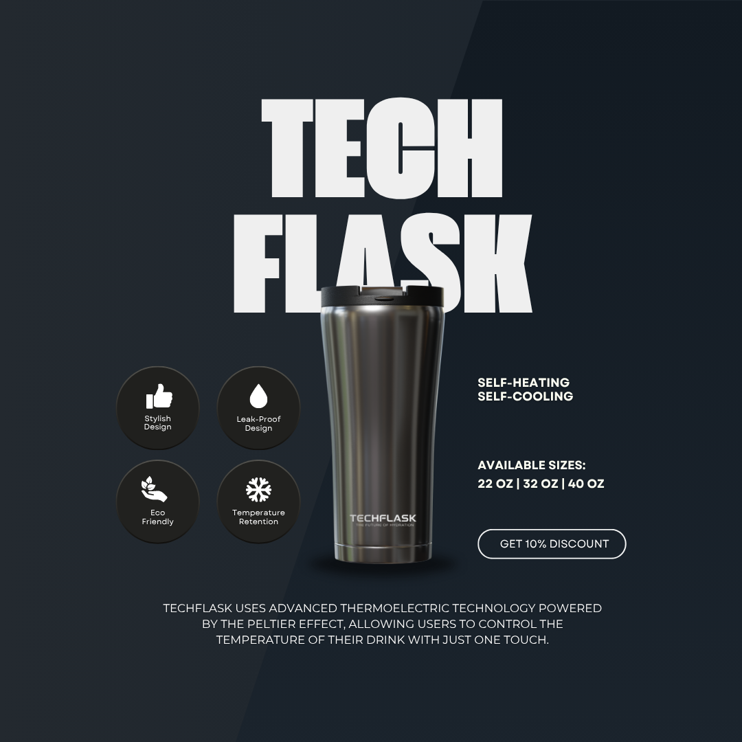 The TECHFLASK: Self-Heating and Self-Cooling Tumbler is designed to meet the needs of modern, active individuals by offering a simple and convenient way to enjoy drinks anytime, anywhere. It caters especially to students, workers, and people with busy lifestyles who want their beverages to stay hot or cold for extended periods—without relying on external heaters or coolers.